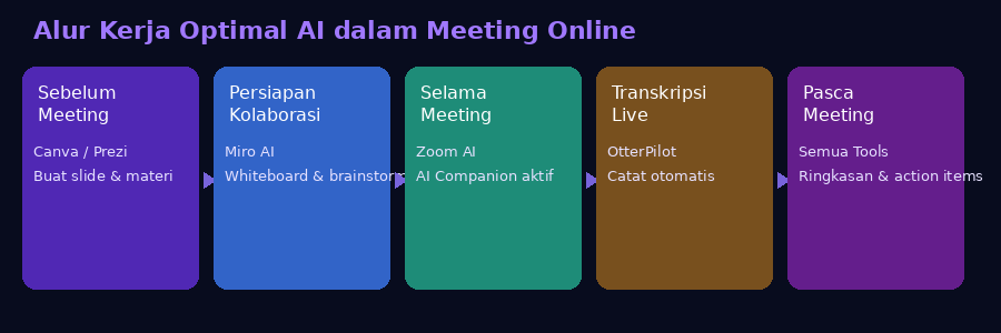 Alur kerja optimal: setiap fase meeting dapat didukung oleh AI tool yang tepat
