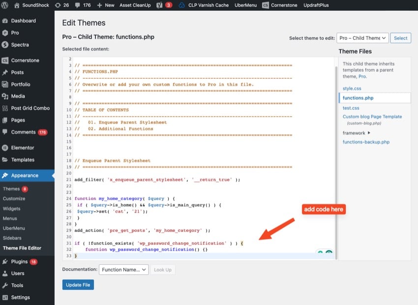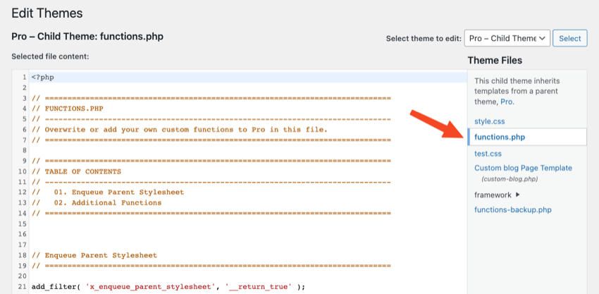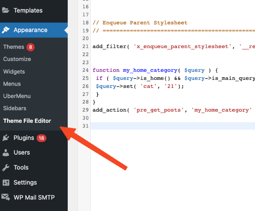 Appearance → Theme File Editor