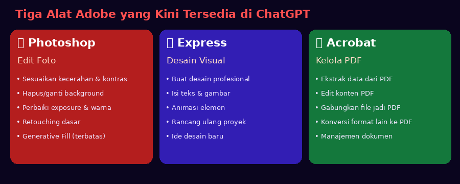Bagian 1: Apa Saja yang Hadir — Tiga Alat Adobe di ChatGPT