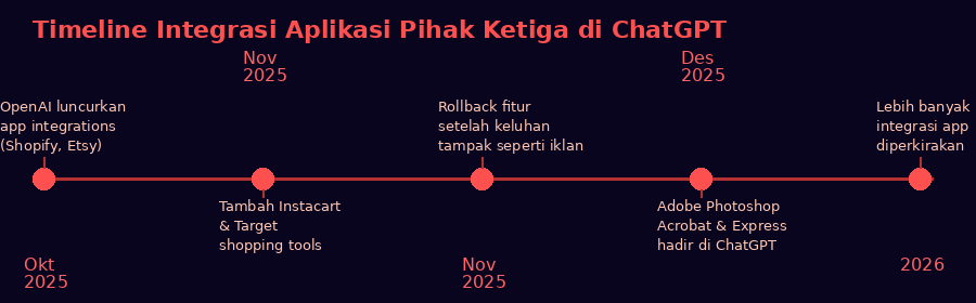 Timeline integrasi aplikasi pihak ketiga di ChatGPT — dari Shopify & Etsy Oktober 2025 hingga Adobe Desember 2025